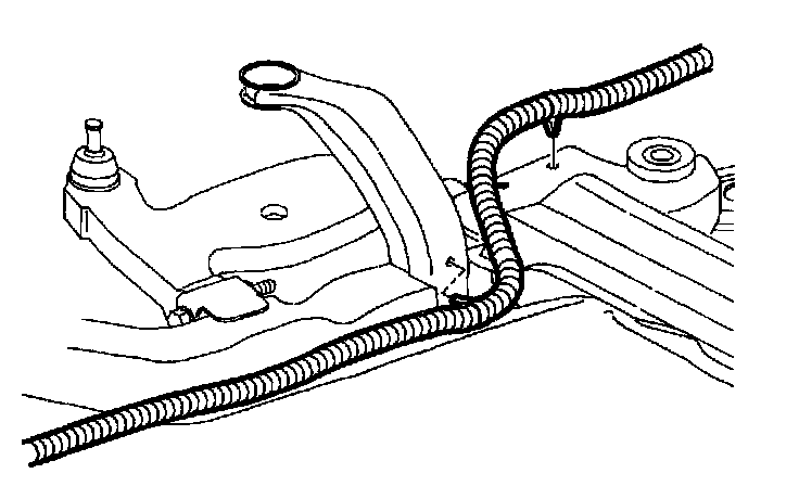 18. Remove A/C line to frame attachment clip at front of vehicle.