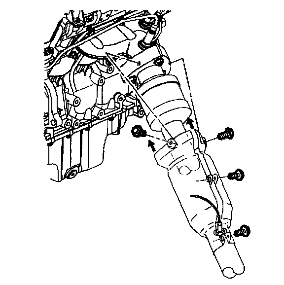 10. Remove exhaust manifold pipe on L81 engines, and on L61 engines with manual transaxle. (L81 shown).