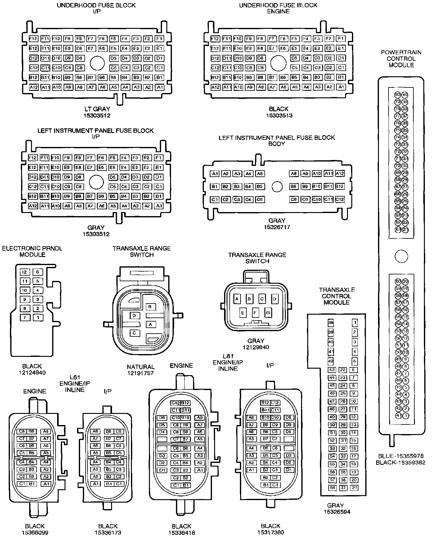 POWERTRAIN CONTROL MODULE (PCM) CONNECTOR FACE VIEWS
