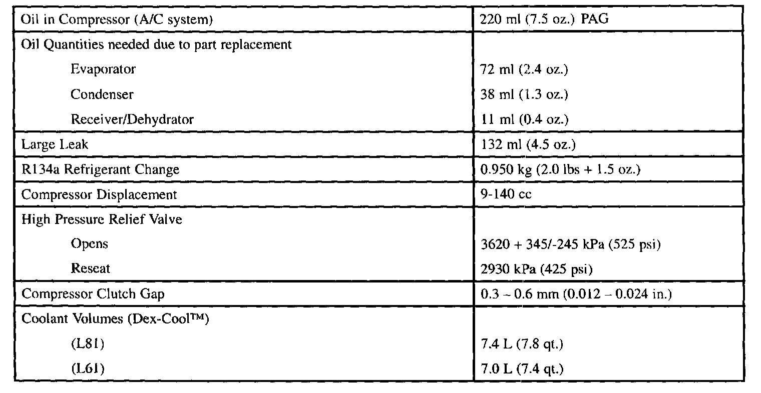 Fluid Capacities: