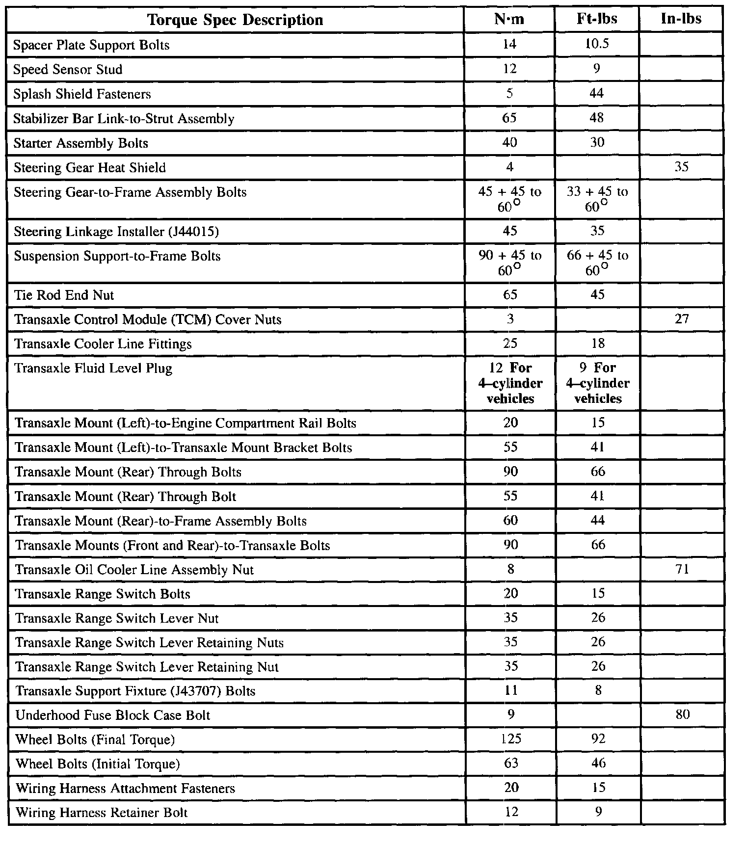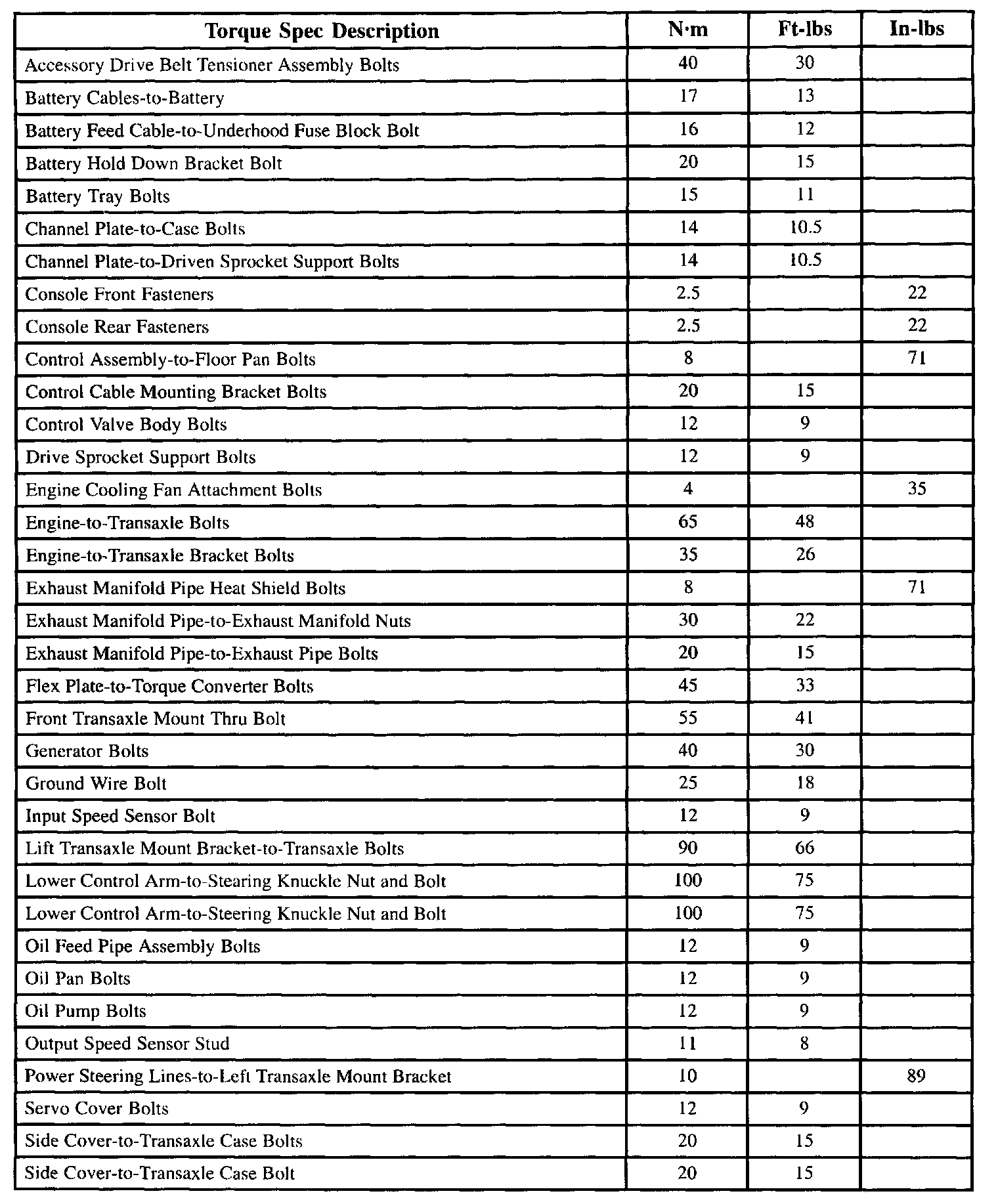 AUTOMATIC TRANSAXLE TORQUE SPECIFICATIONS