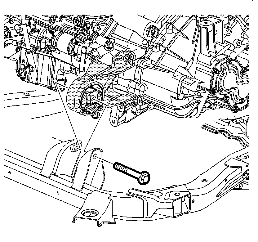 7. Remove the front transaxle mount through bolt.