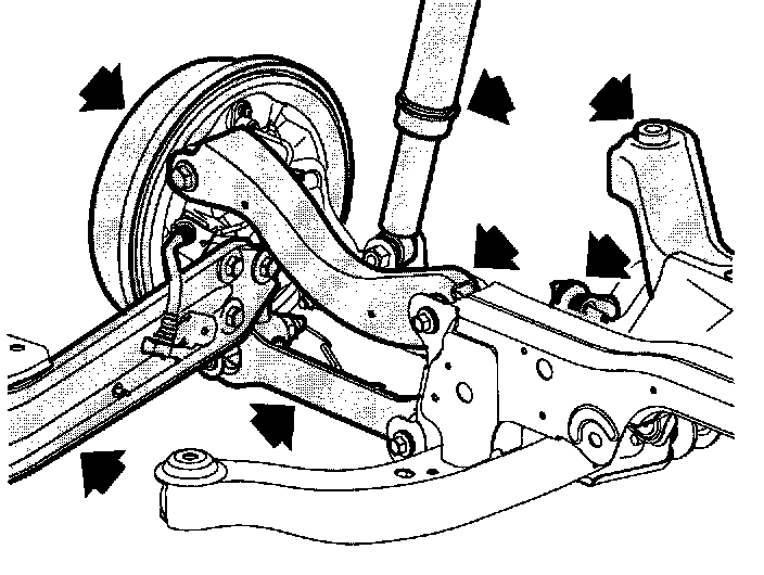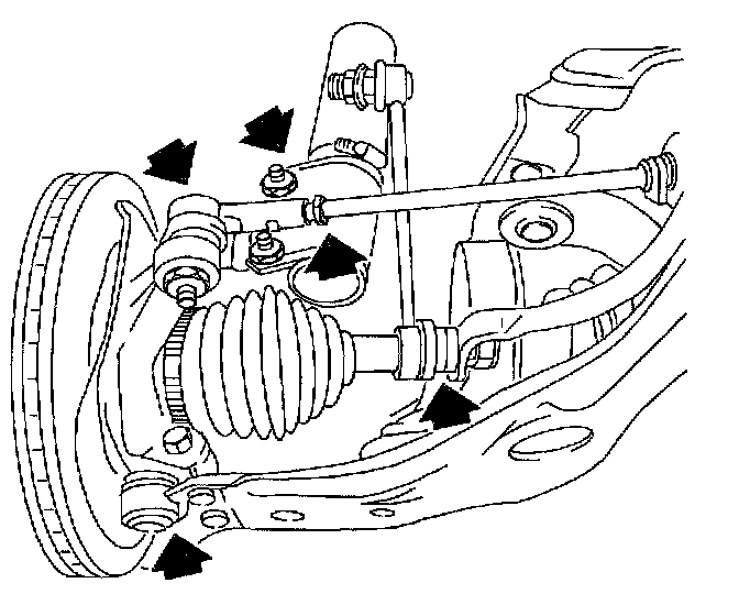 4. Check lower control arms for worn ball studs, worn bushings, or bent arms.