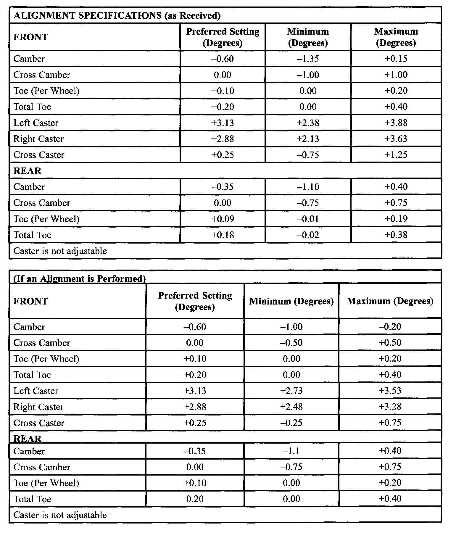 ALIGNMENT SPECIFICATIONS