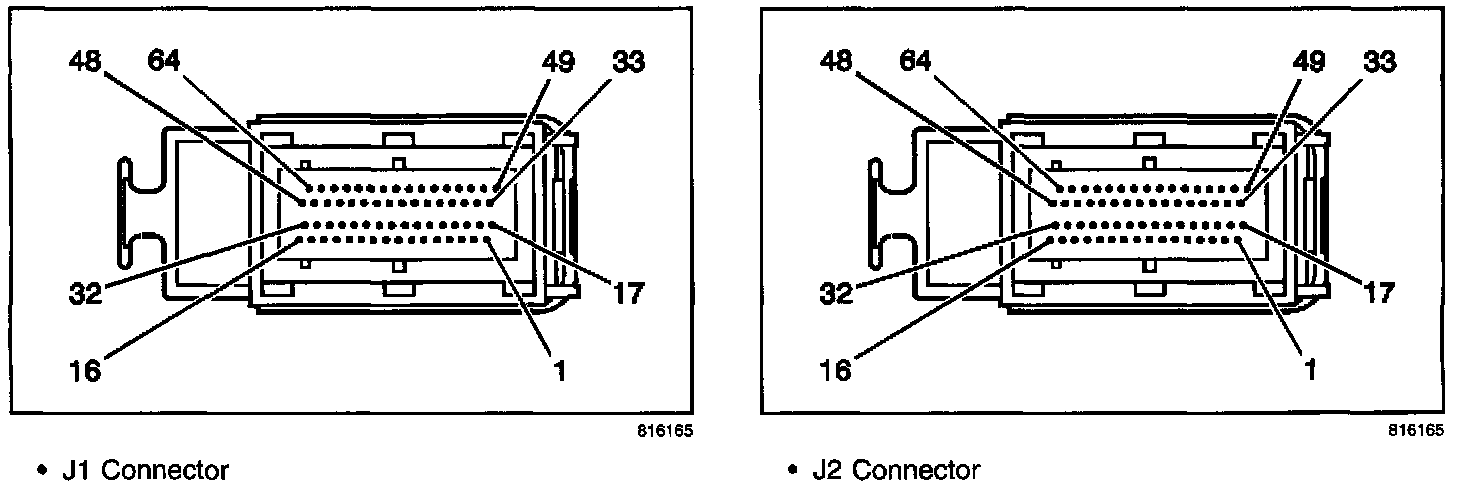 Revised 2.2L (L61) Engine Control Module J1 & J2 Connector Face Diagram
