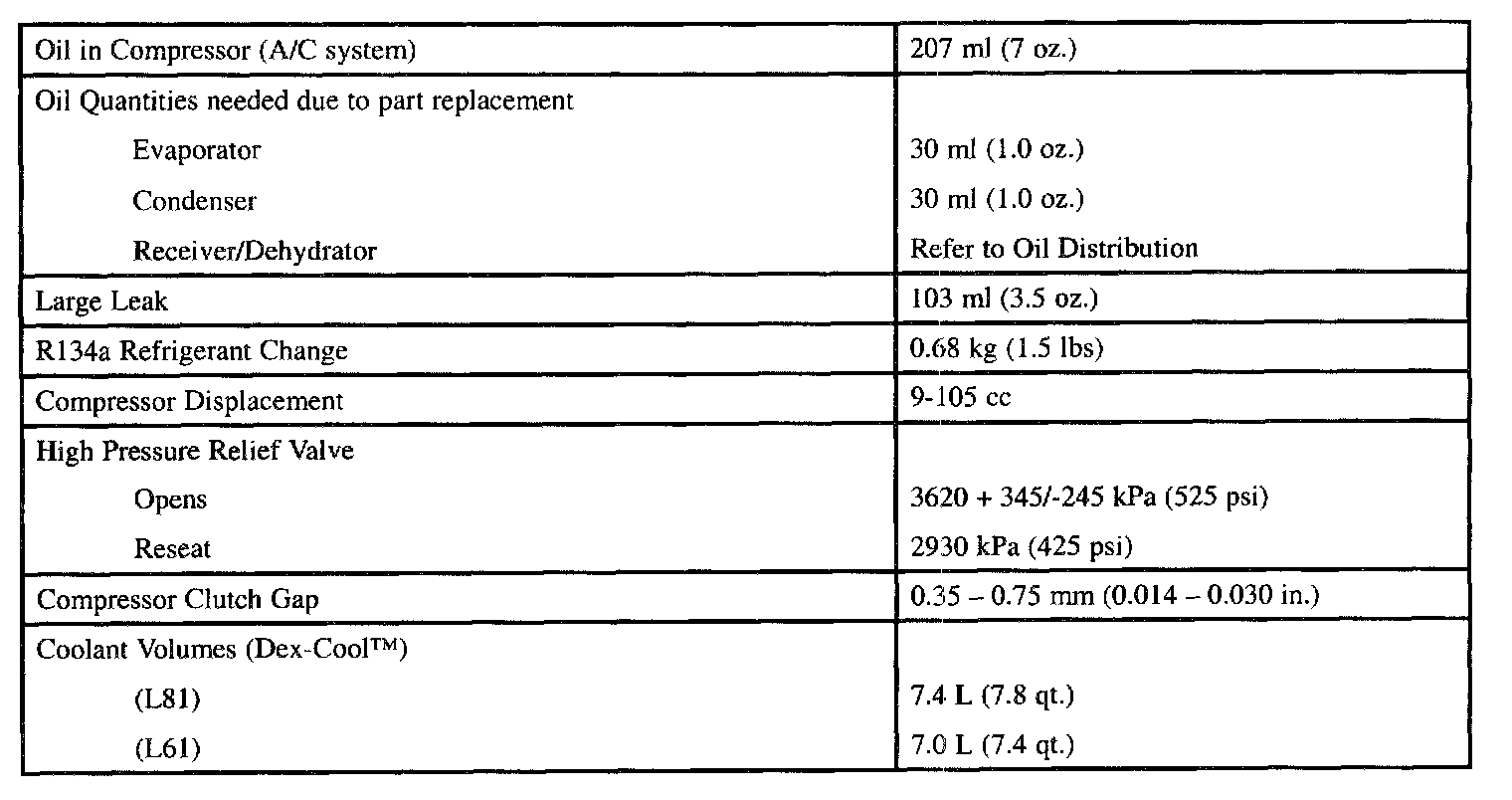 Fluid Capacities: