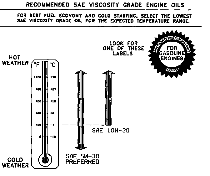 NOTICE: Use only oil with the American Petroleum Institute Certified for Gasoline Engines "Starburst" symbol. Failure to use the recommended oil can result in engine damage not covered by your warranty.