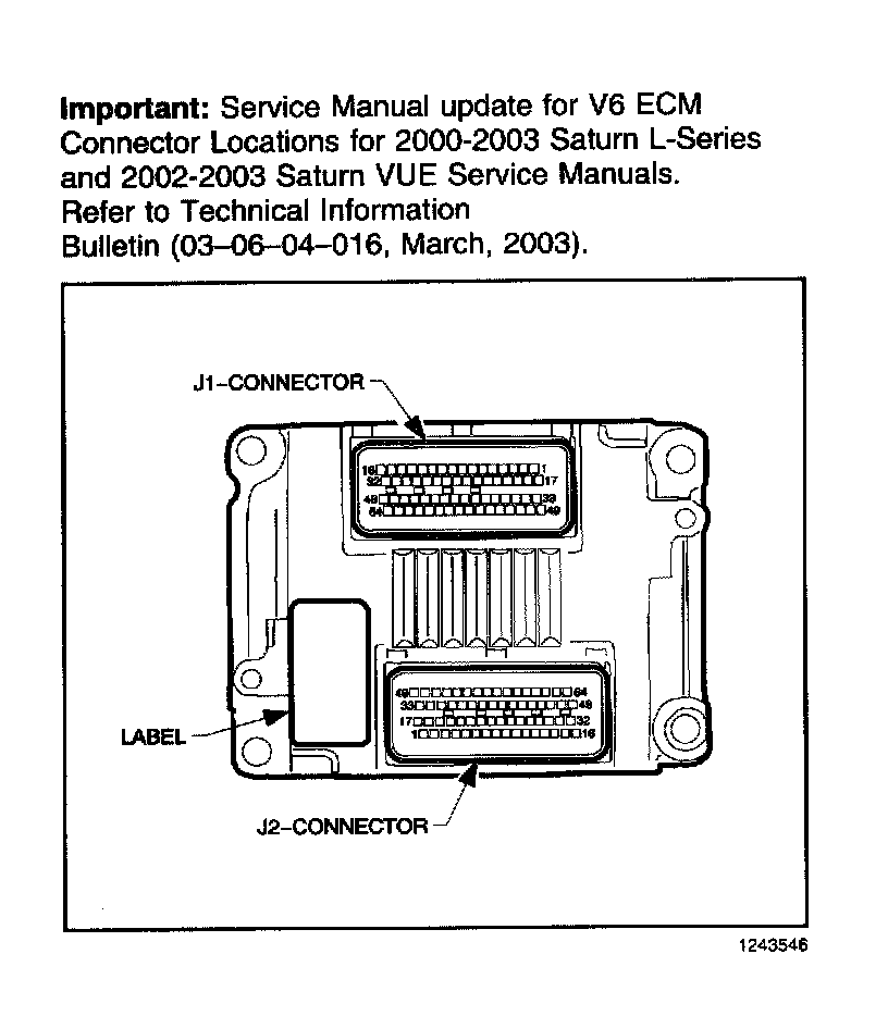 Home >> Saturn >> 2002 >> VUE V6-3.0L VIN B >> Repair and Diagnosis >> Powertrain Management >> Computers and Control Systems >> Engine Control Module >> Technical Service Bulletins >> Engine Controls - ECM Connector Locations Update