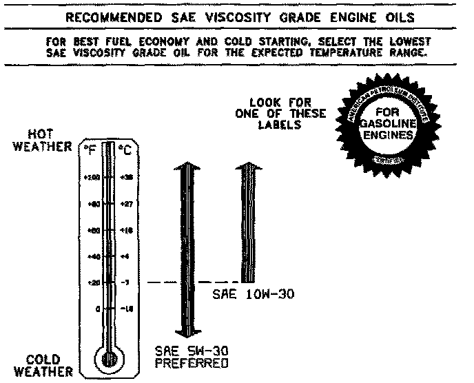 NOTICE: Use only oil with the American Petroleum Institute Certified for Gasoline Engines "Starburst" symbol. Failure to use the recommended oil can result in engine damage not covered by your warranty.