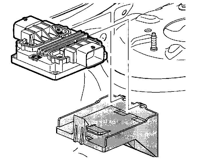 2. Pull retaining tang from the transaxle control module and rotate the transaxle control module up. Remove the transaxle control module from transaxle control module bracket.