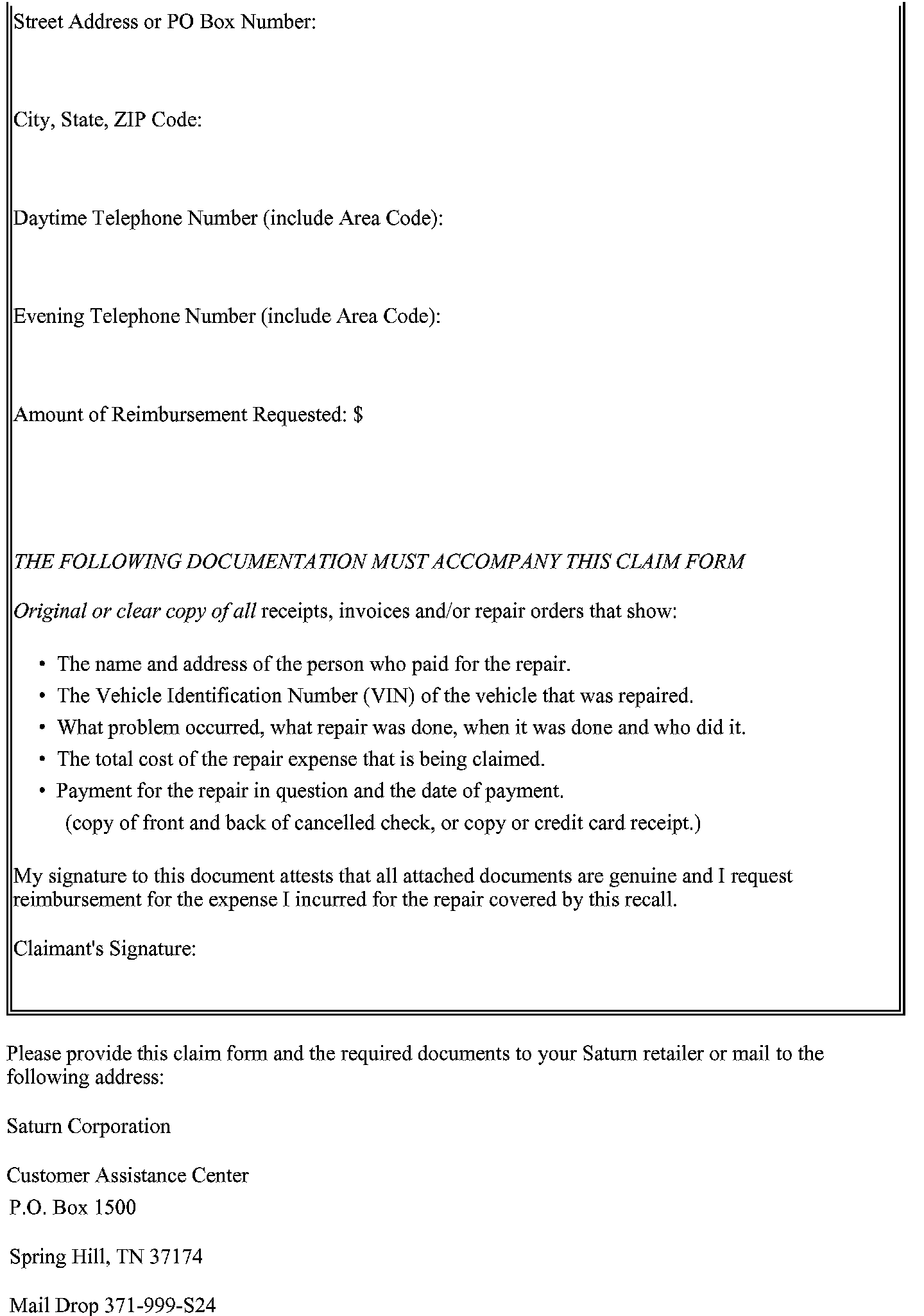 Product Recall Customer Reimbursement Procedure Form