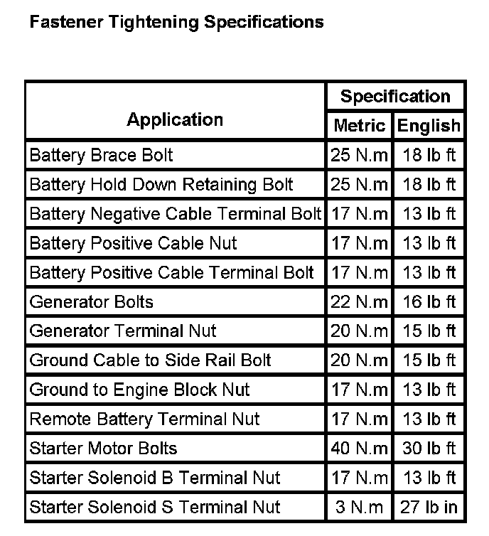 Starting and Charging: Specifications