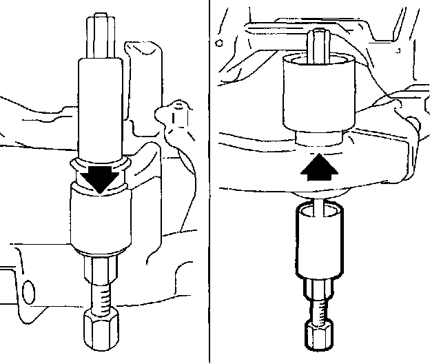 5. Using tools Bushing Remover/Installer KM-671, Bushing Remover/Installer KM-907 KM-907-11, KM-907-12 and KM-907-30, press out all damping bushings.