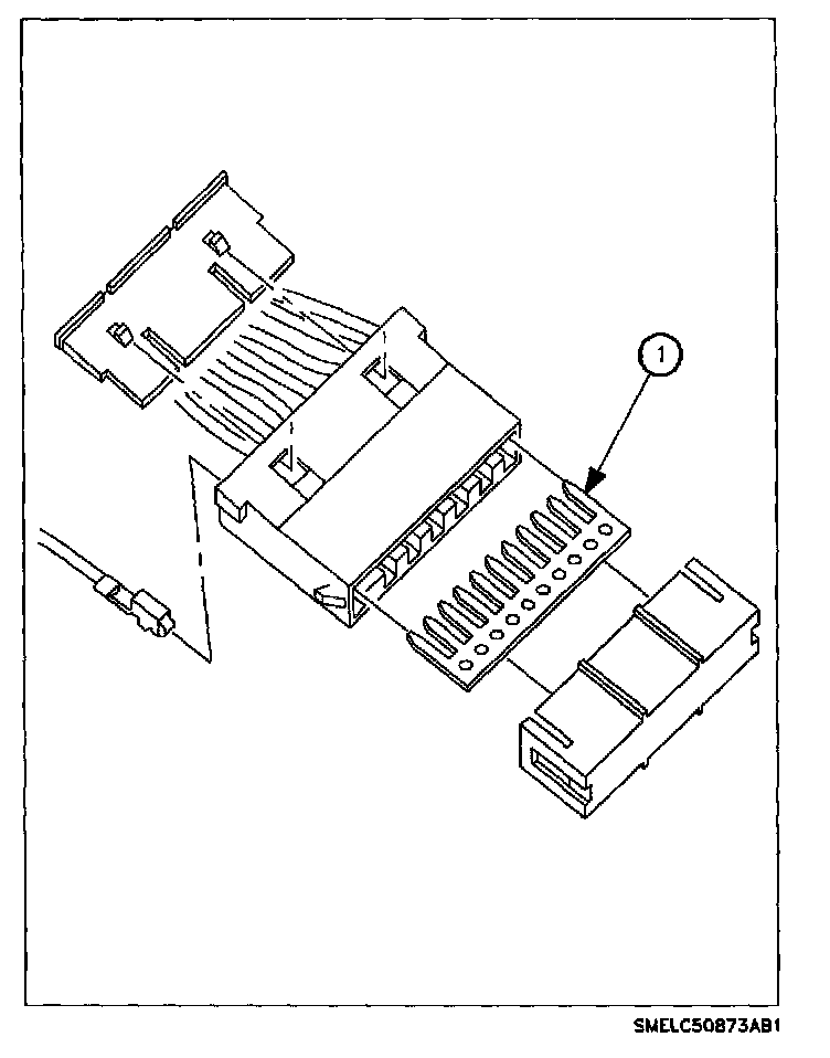 Splice packs are used to replace conventional soldering and clipped splices. The splice pack consists of a buss bar (1) with male blades that plug into a standard female crimp on terminal. A plastic cover is placed over the buss bar to insulate it from surrounding wires and the environment. This feature improves the reliability of splices.