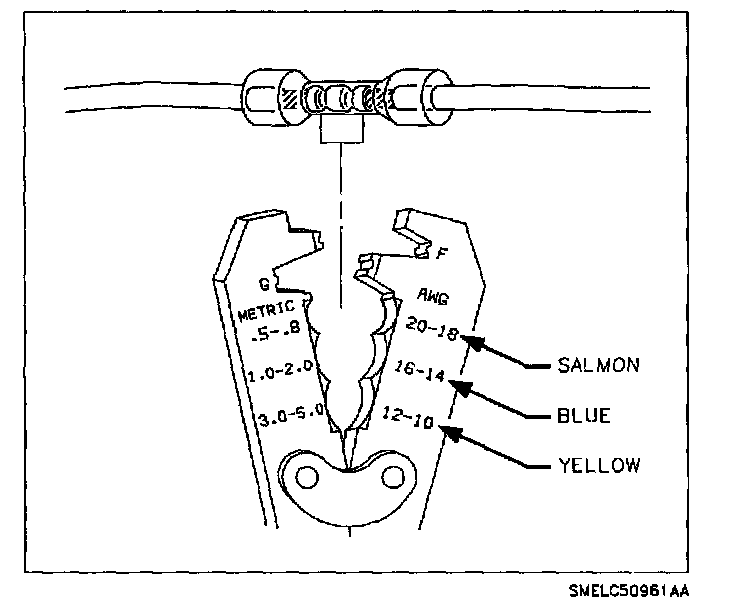 With the low current and voltage wires in the Saturn vehicle, it is best to use approved Packard Electric Crimp and Seal Splice Sleeves (or equivalent).