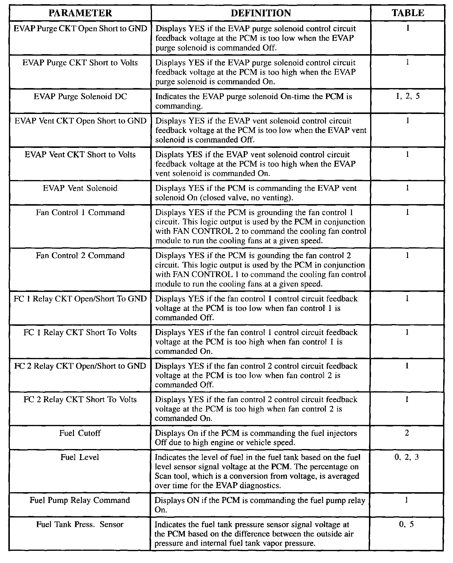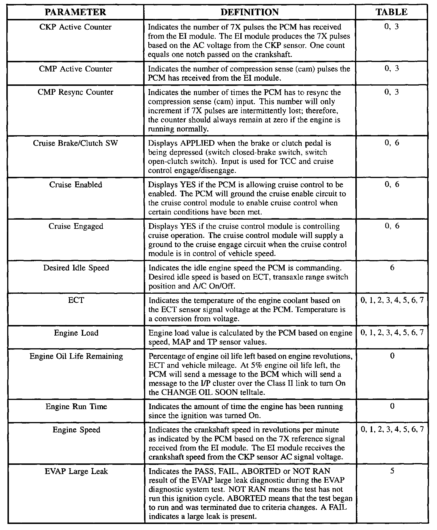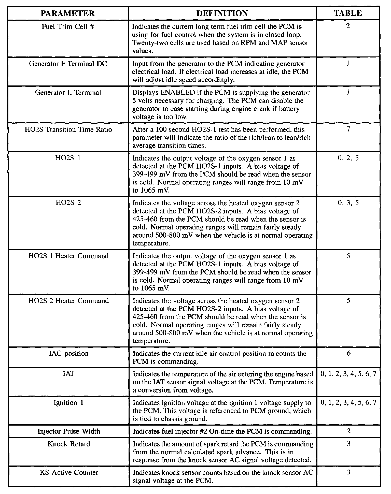 Scan Tool Data, Normal Values and Definitions