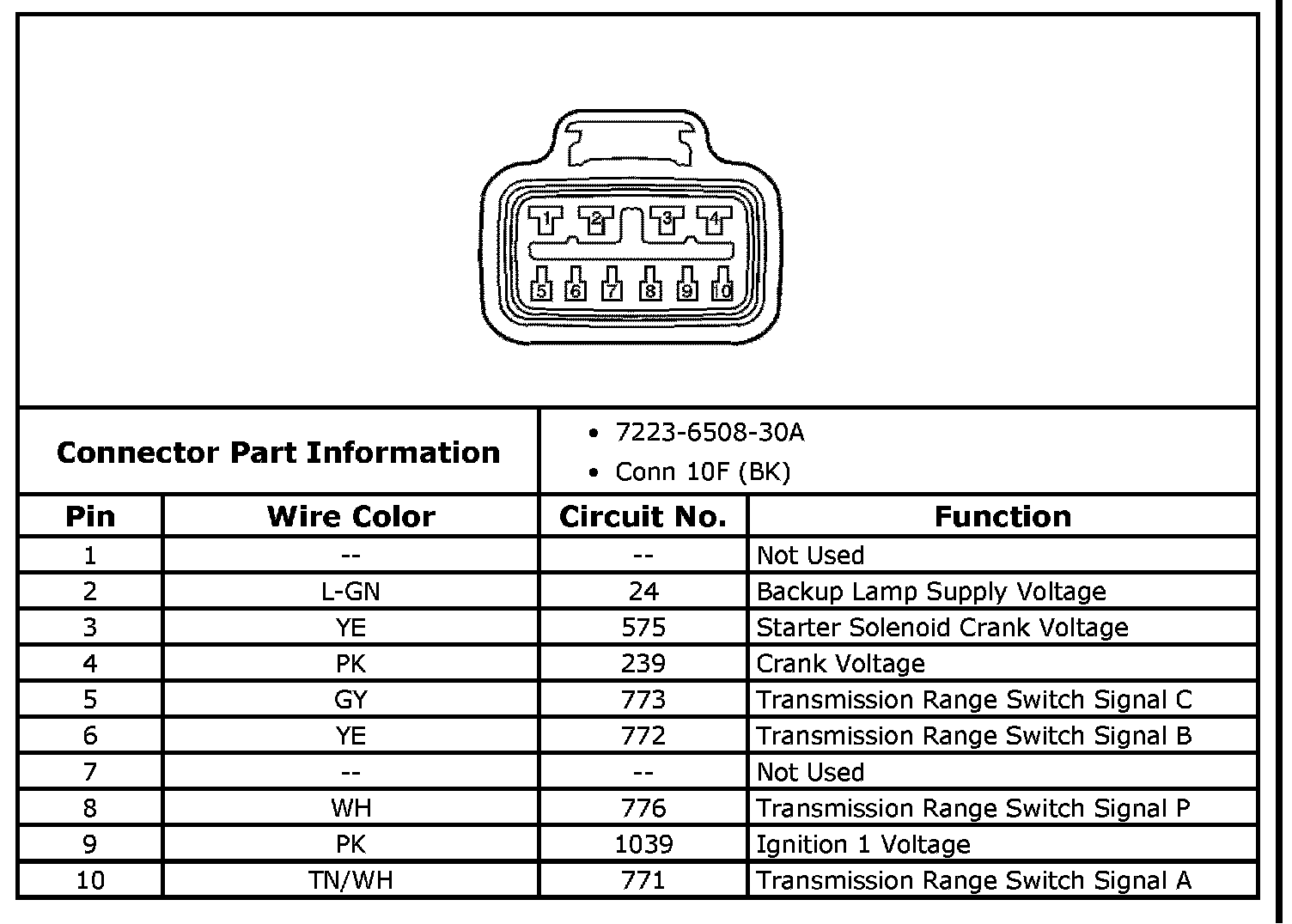 Transmission Park/Neutral Position Switch Assembly Connector - Wiring Harness Side