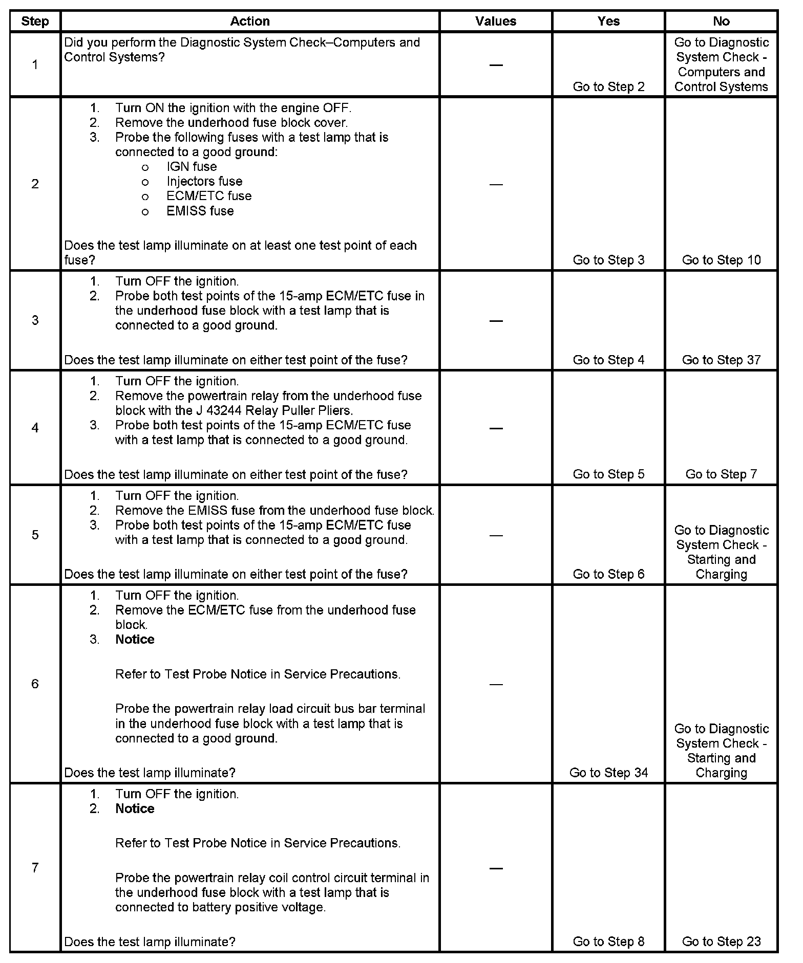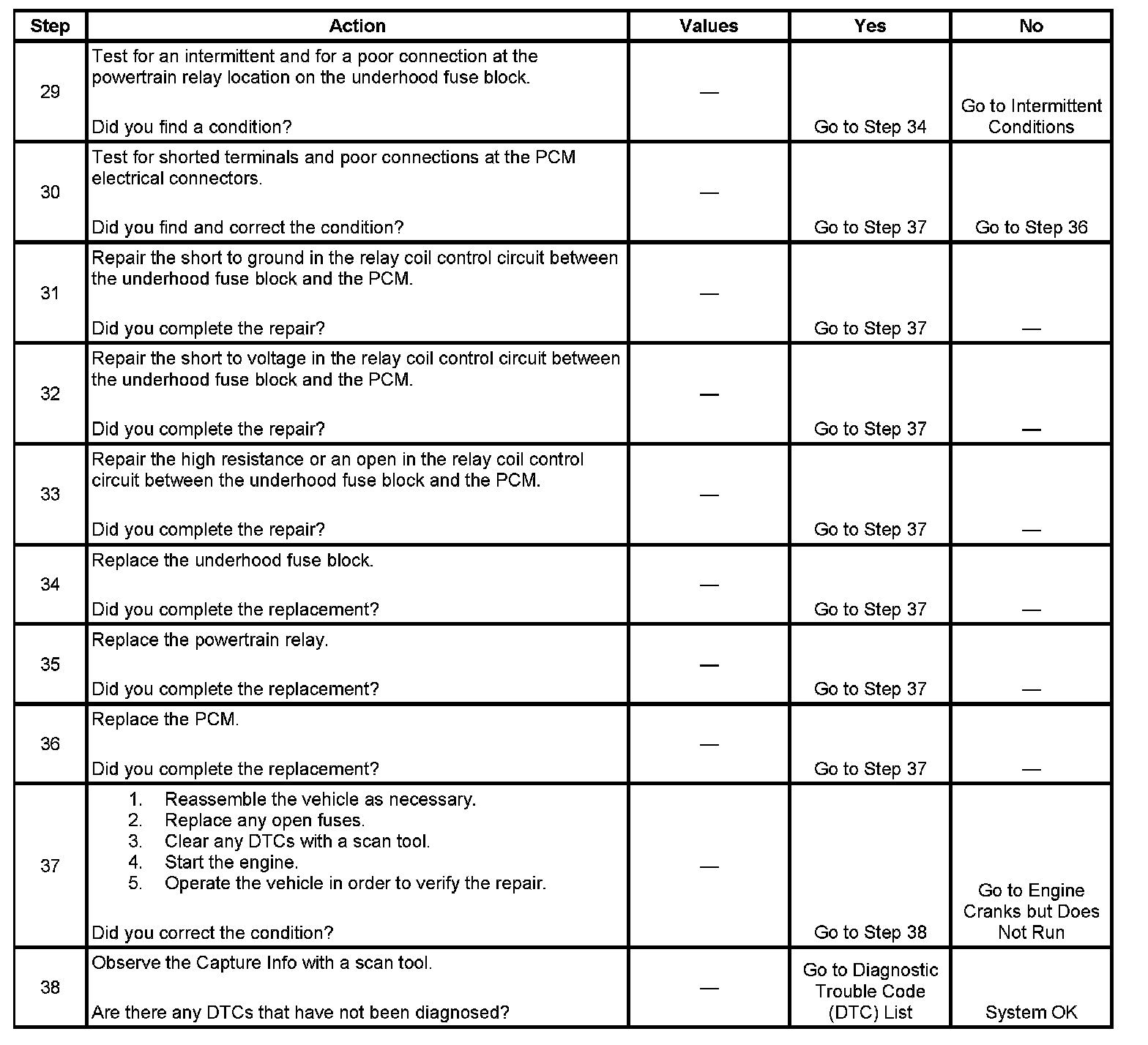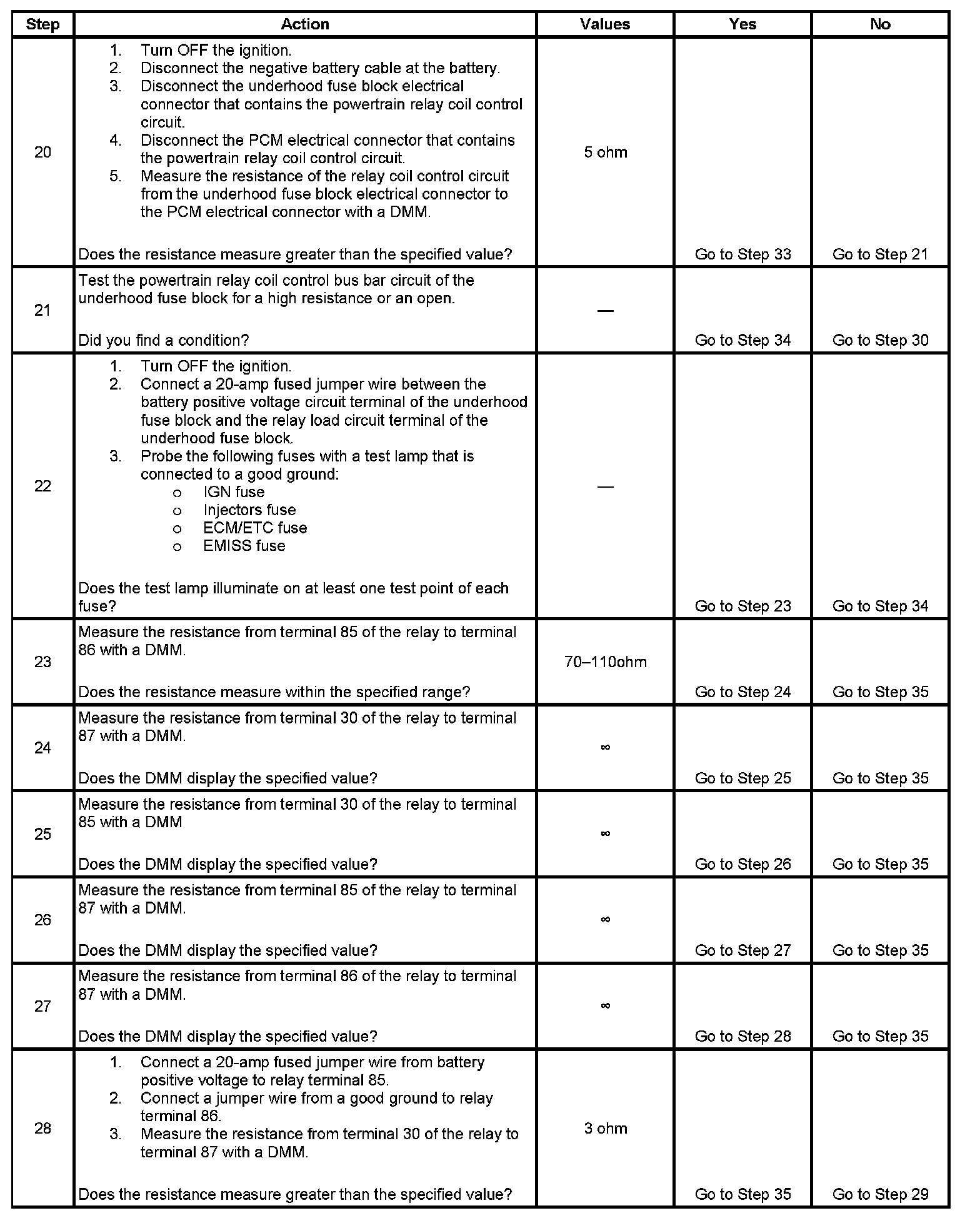 The powertrain relay system diagnosis table assumes that the vehicle battery is fully charged.