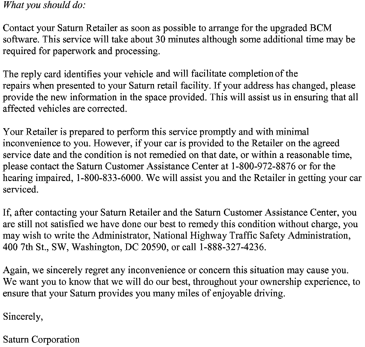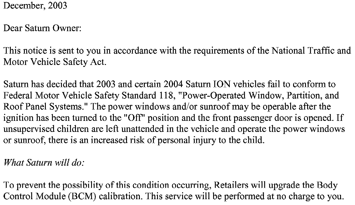 Recall - Body Control Module Software Upgrade