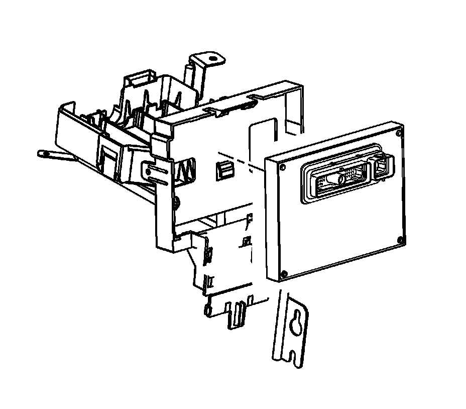 1. Use the retaining tab to secure the ECM, when installing the ECM to the underhood junction block bracket.