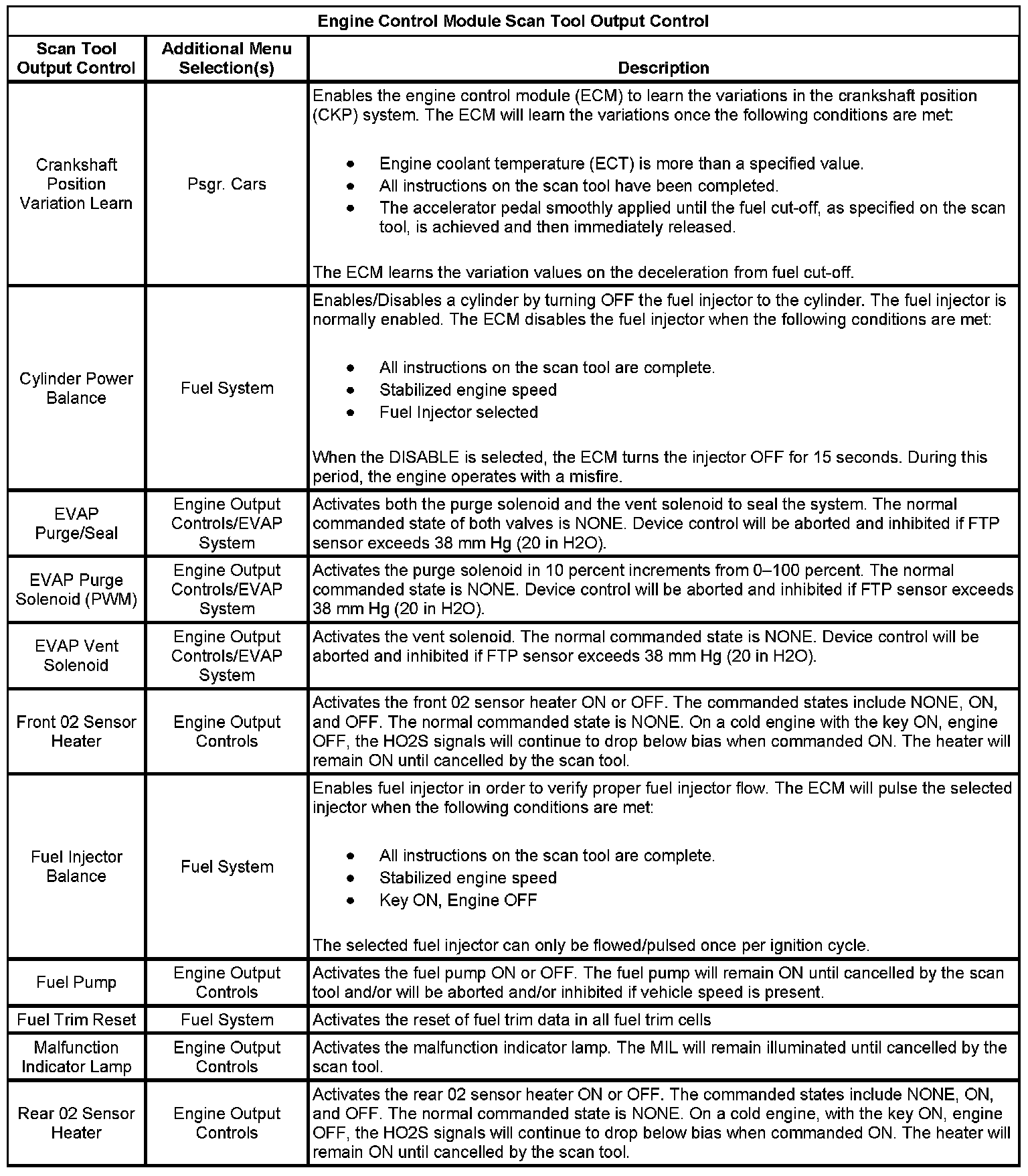 Engine Control Module Scan Tool Output Control:
