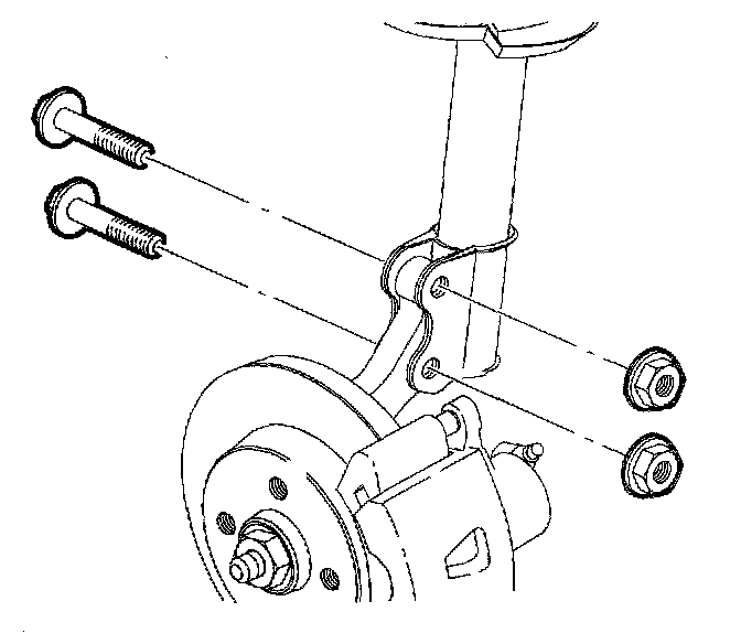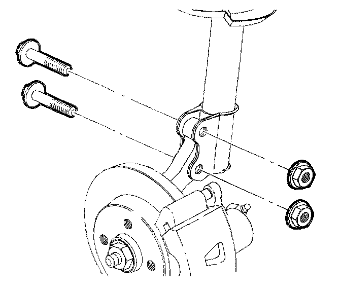 3. Remove the strut to knuckle nuts and bolts. Discard the nuts and bolts.
