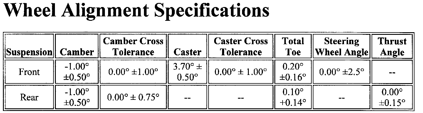 Wheel Alignment Specifications: