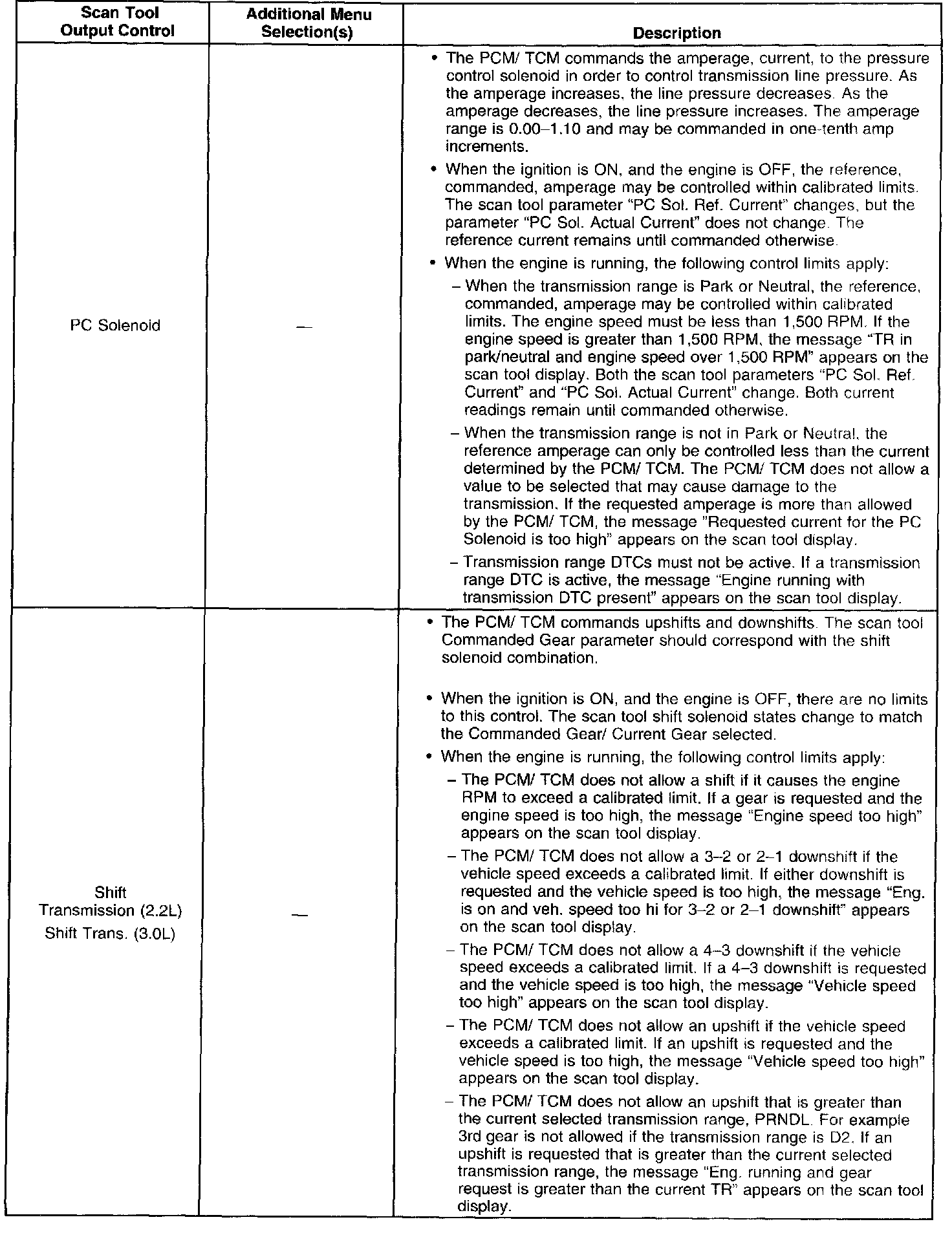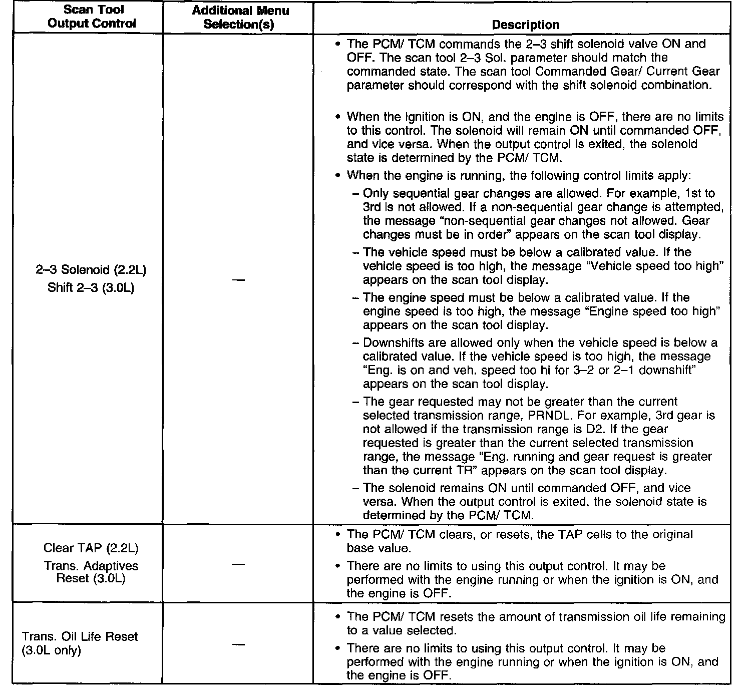 Scan Tool Output Controls