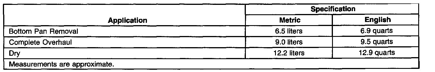 Fluid Capacity Specifications: