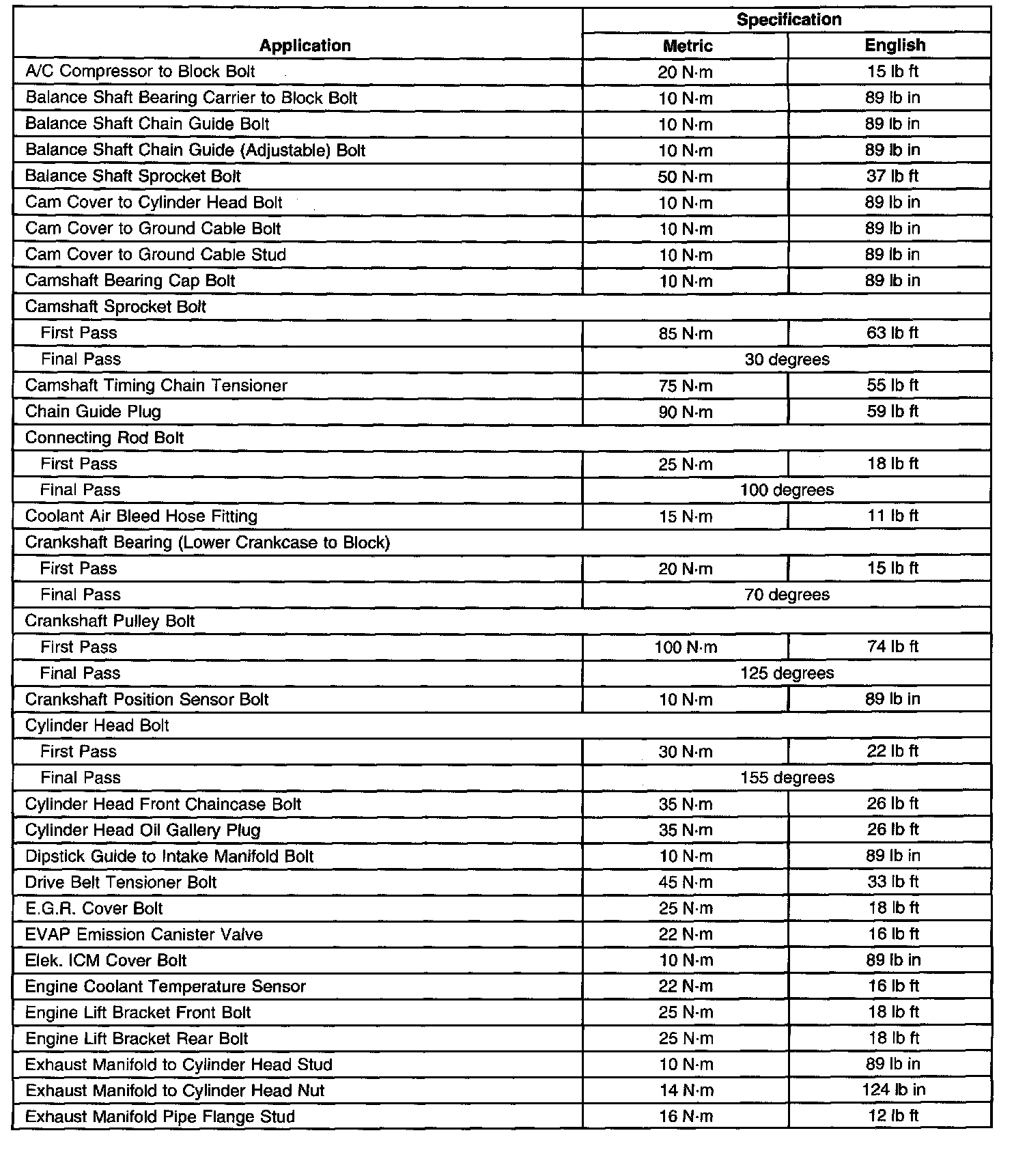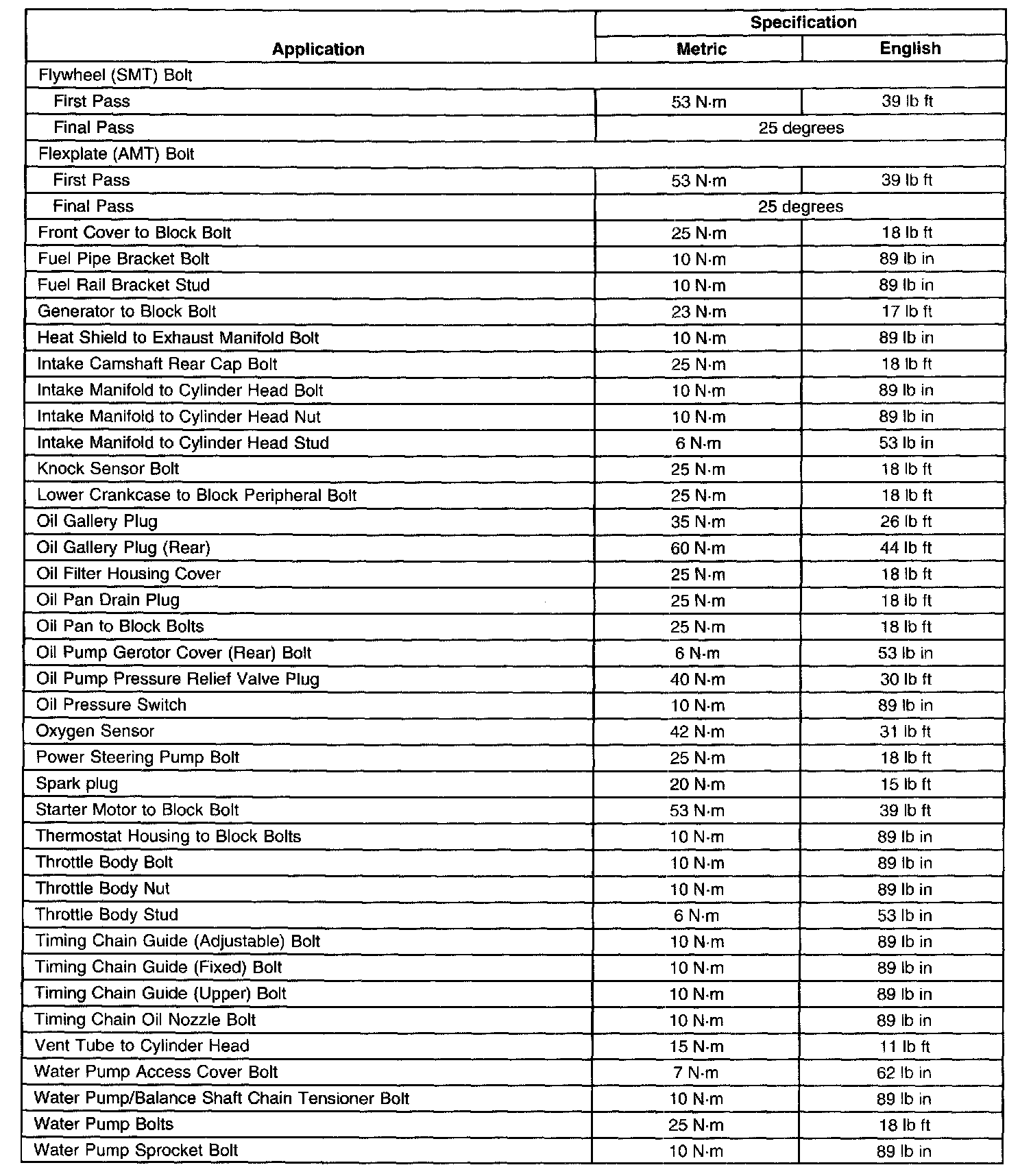 Torque Specifications