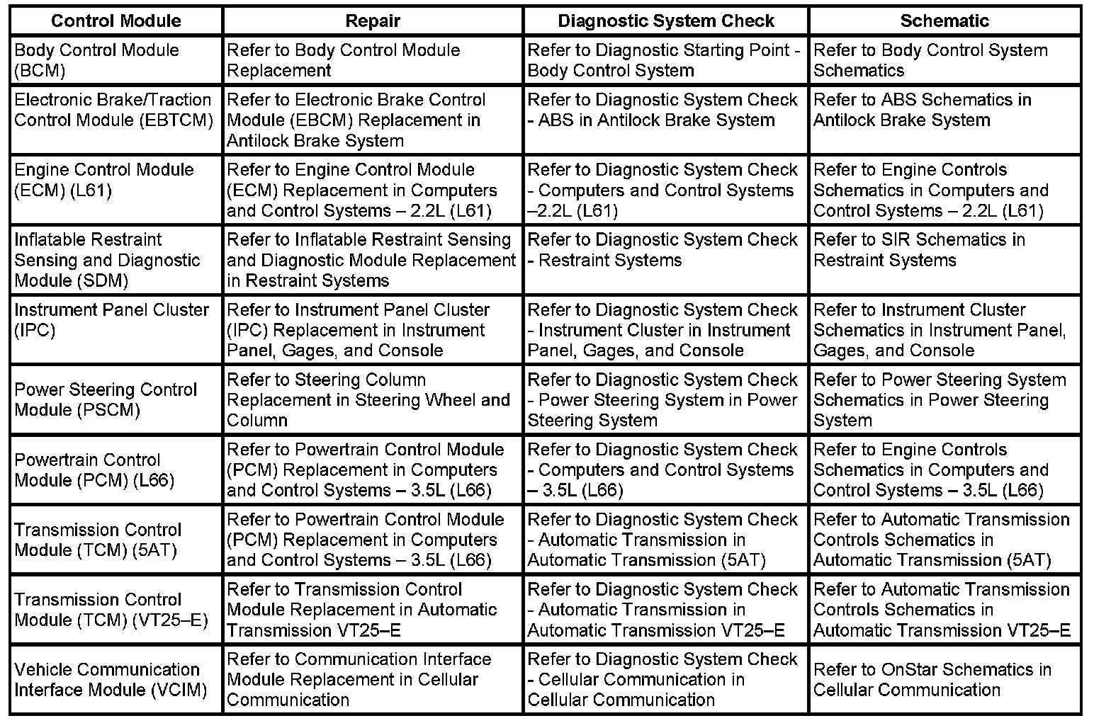 Control Module References