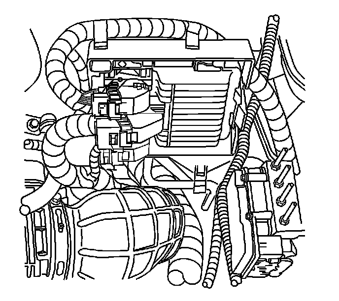1. Use the retaining tab to secure the PCM, when installing the PCM to the underhood junction block bracket.