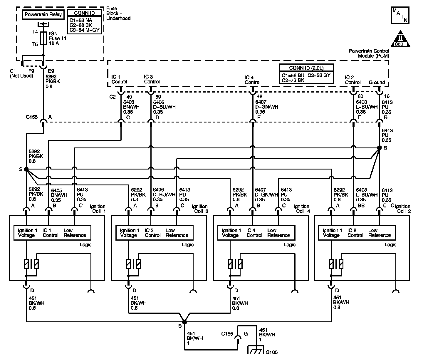 The PCM controls the individual coils by transmitting timing pulses on the IC circuit of each ignition coil/module to enable a spark event.