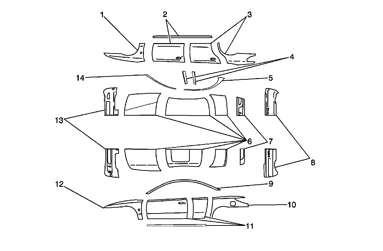 Exterior body panels are constructed of various materials, due to the increased dent and corrosion resistance of modern composites. All vertical panels, such as fenders, doors, quarters, and rocker panels, are made from rigid thermoplastic. Front and rear fascias are constructed of thermoplastic olefin (TPO). The hood, roof, and deck are steel.