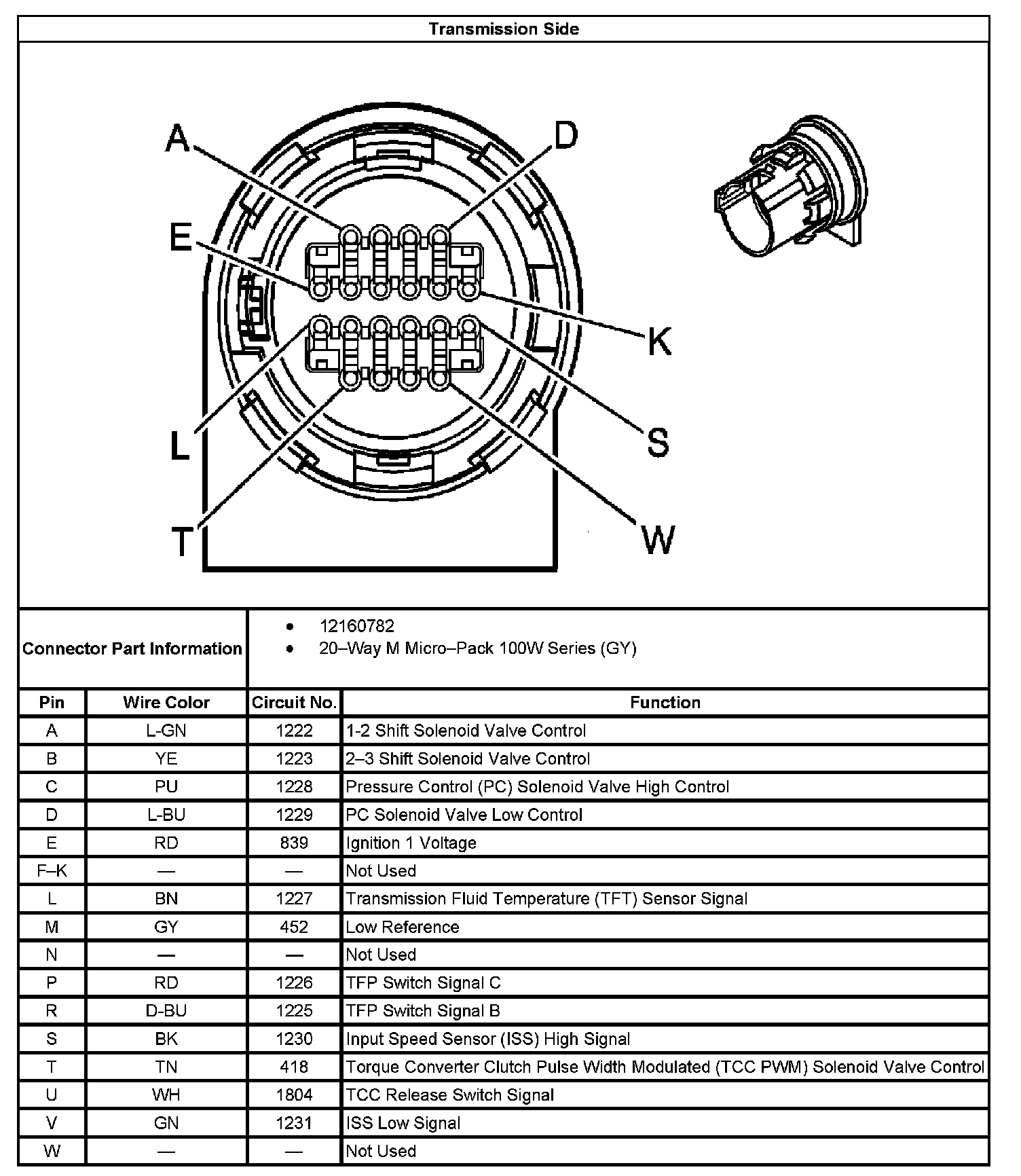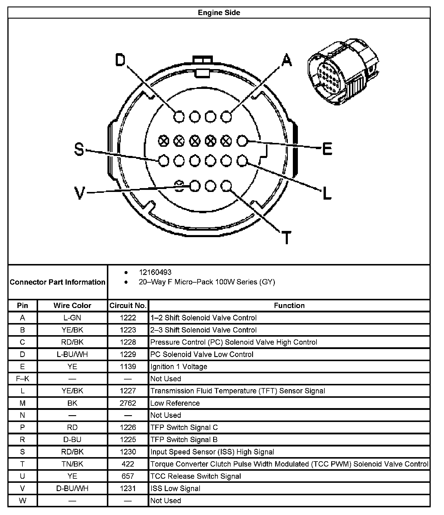 Automatic Transmission Inline 20-Way Connector End View: