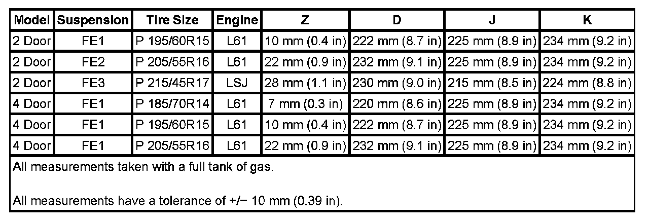 Trim Height Specifications: