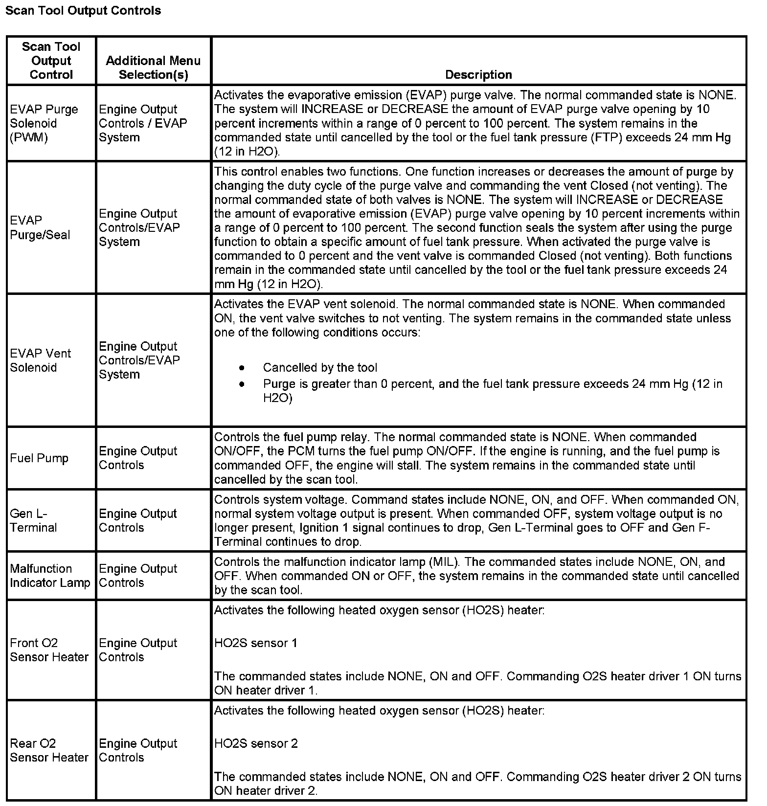 Scan Tool Output Controls: