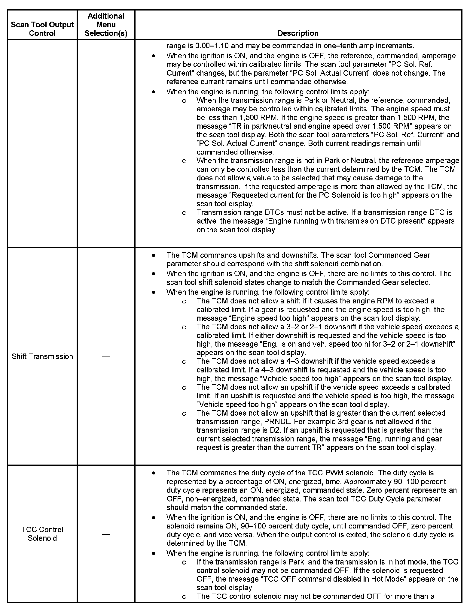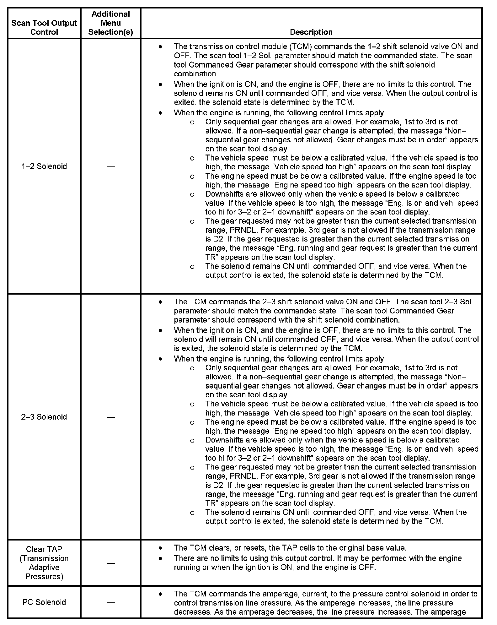 Scan Tool Output Controls