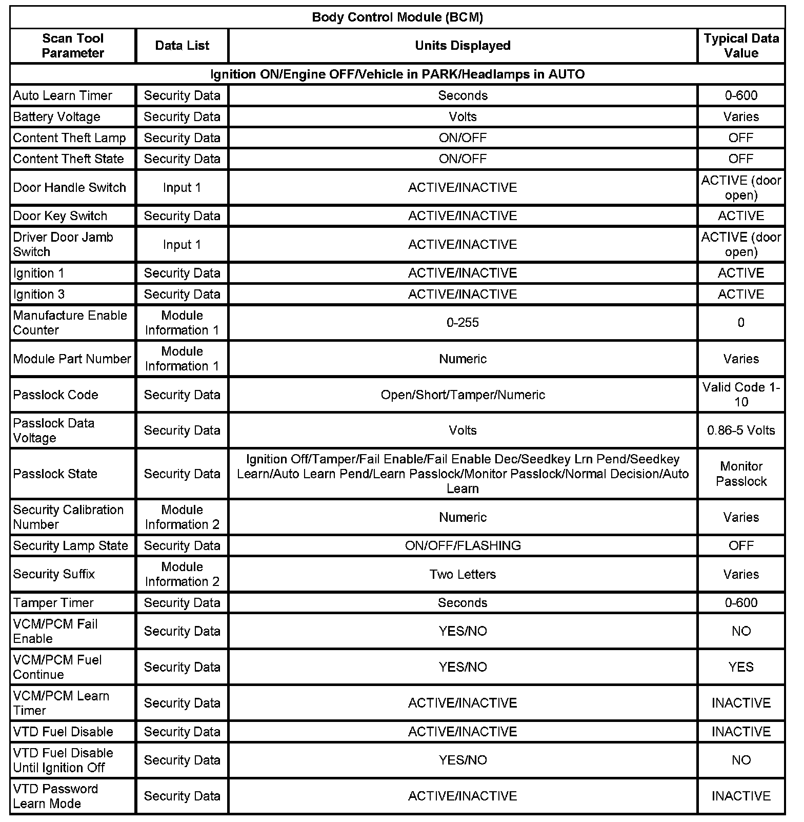 Scan Tool Data List - Antitheft System
