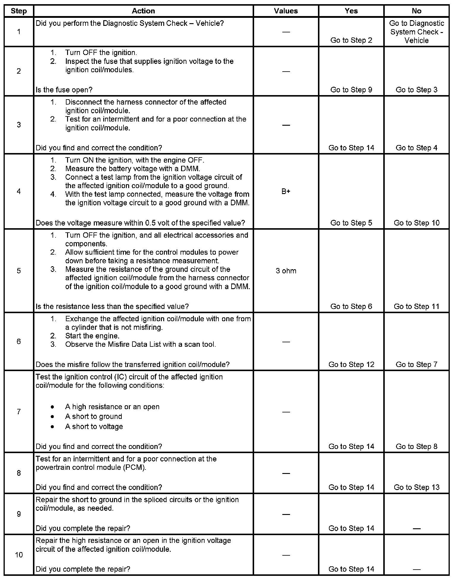 Perform the spark plug inspection procedure before continuing with this diagnostic. Refer to Spark Plug Inspection. Testing and Inspection