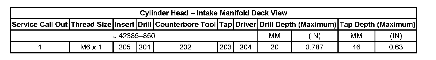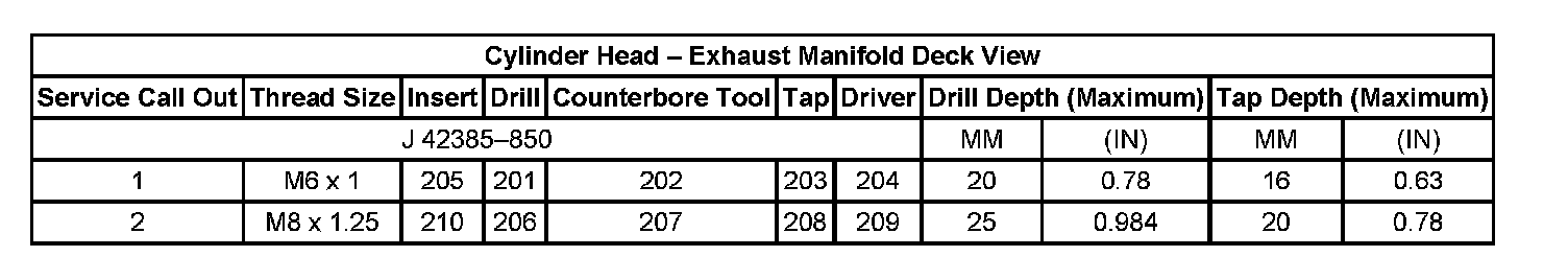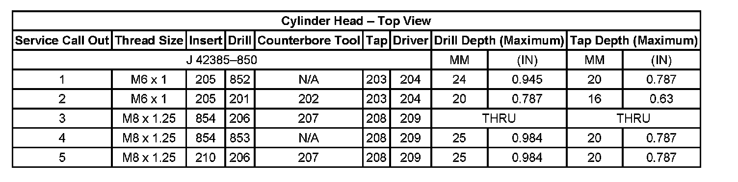 Thread Repair Specifications Cylinder Head - Top View: