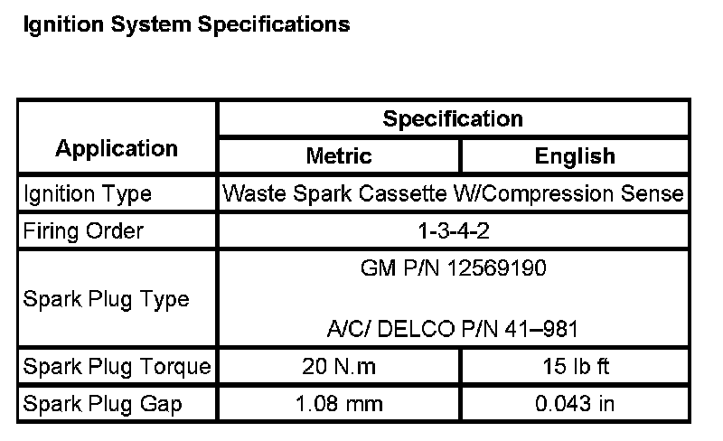 Ignition System Specifications: