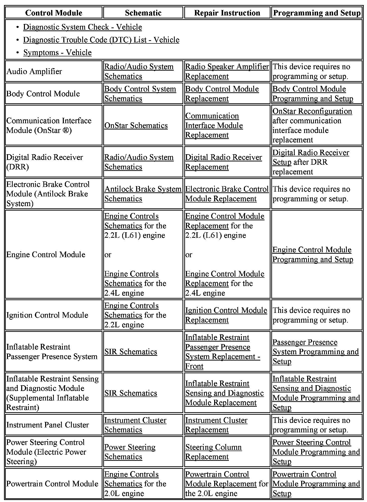 Control Module References