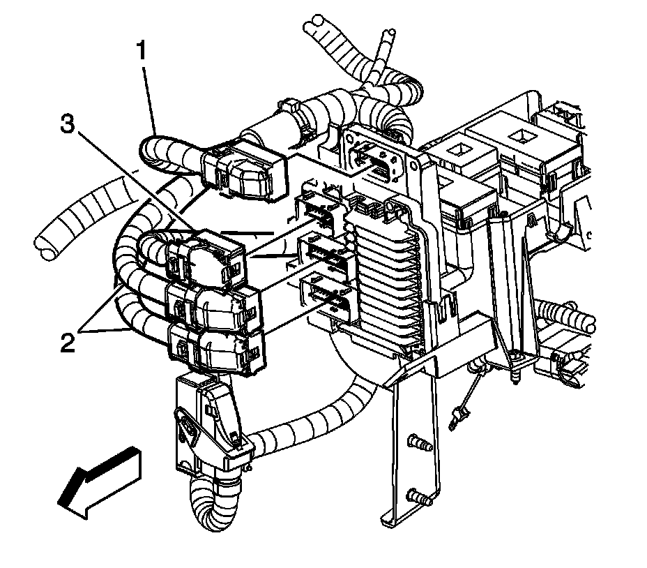 3. Disconnect the body wiring harness electrical connector (3) from the engine control module (ECM).