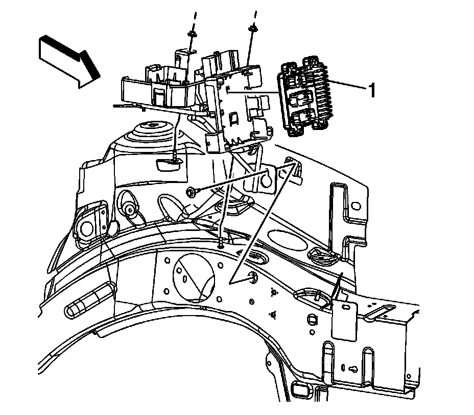 5. Disengage the side retaining tab in order to release the ECM (1) from the bracket.