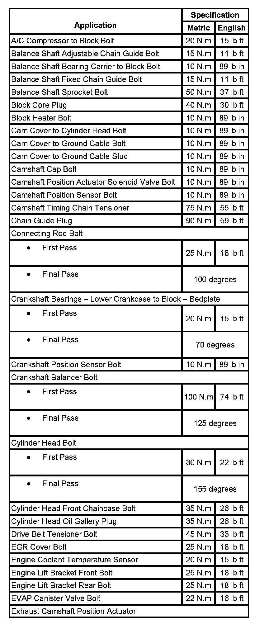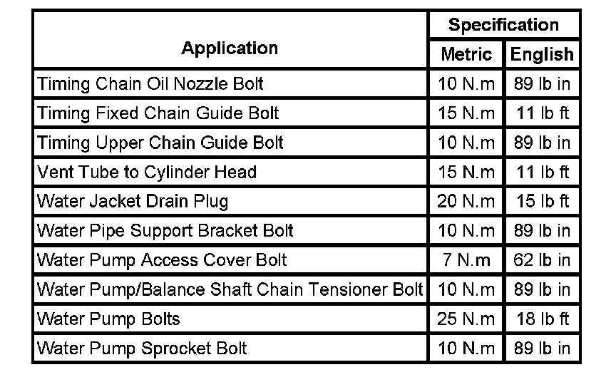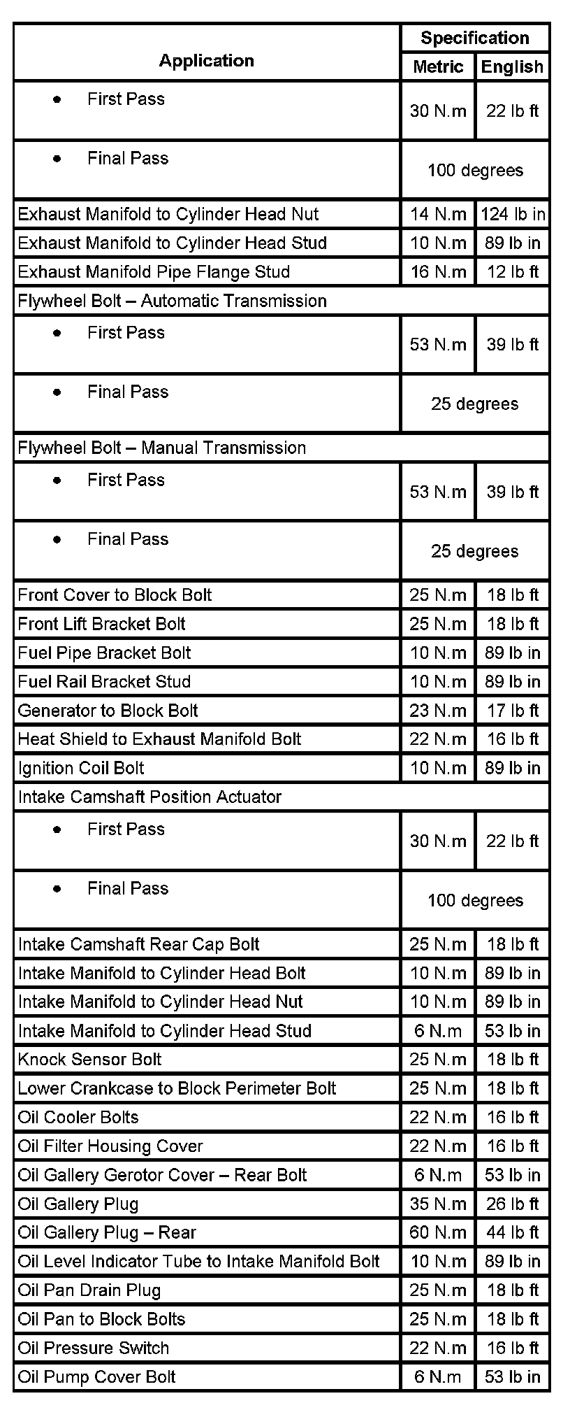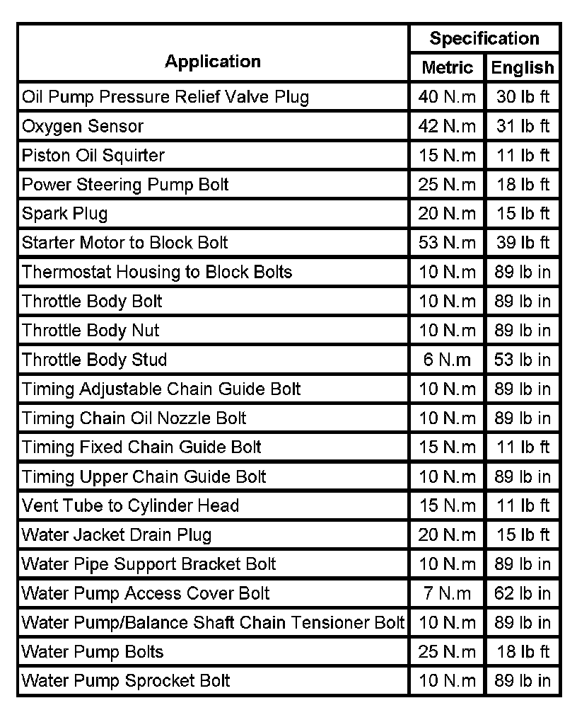 Fastener Tightening Specifications: