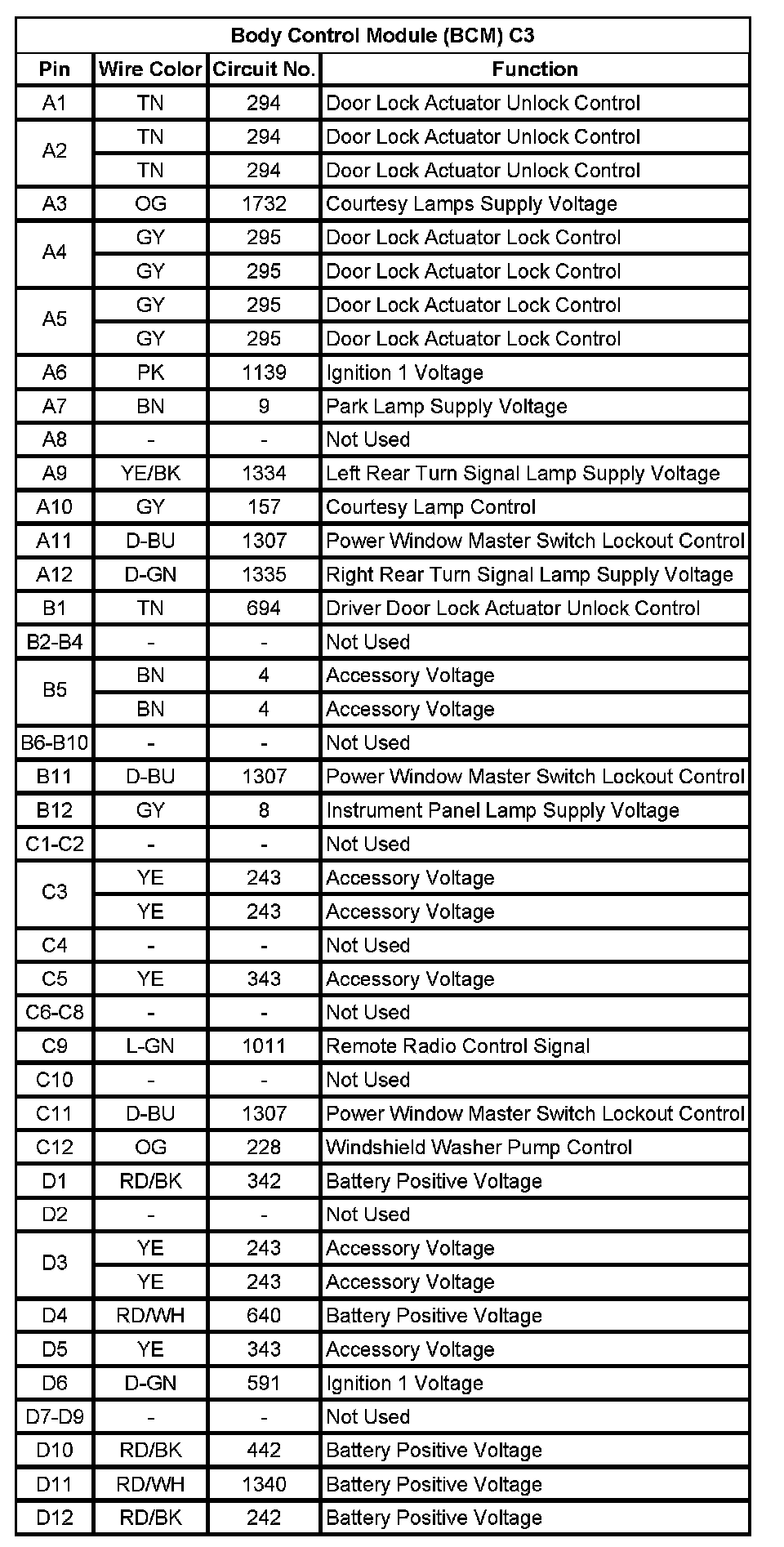 Body Control Module (BCM) C1 (Pin 1 To 58):