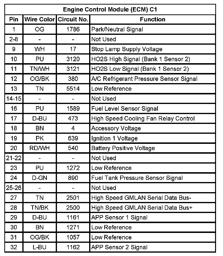 Engine Control Module (ECM) C1 (Pin 1 To 32):