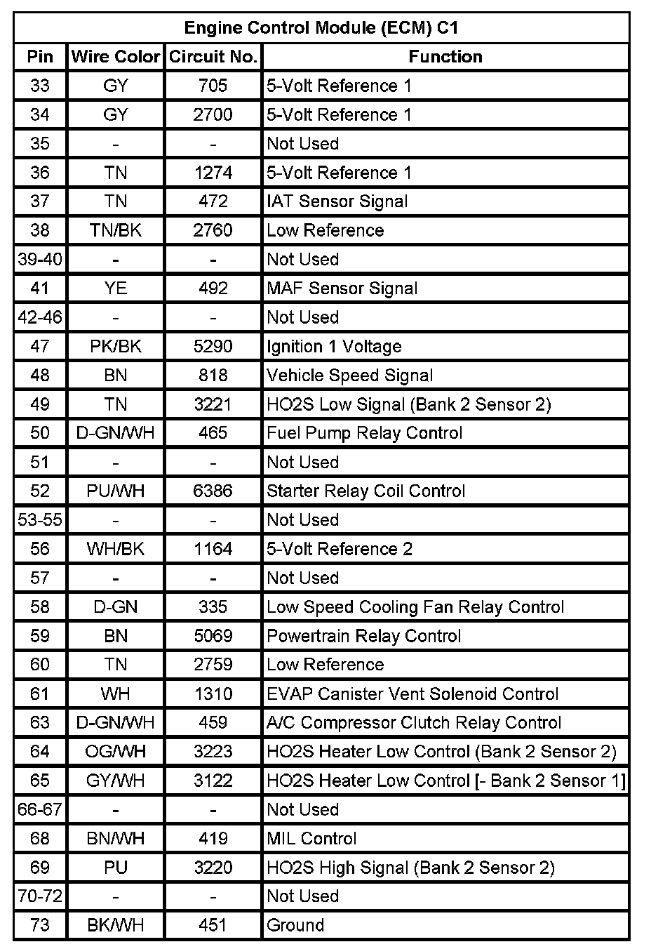 Engine Control Module (ECM) C1 (Pin 33 To 73):