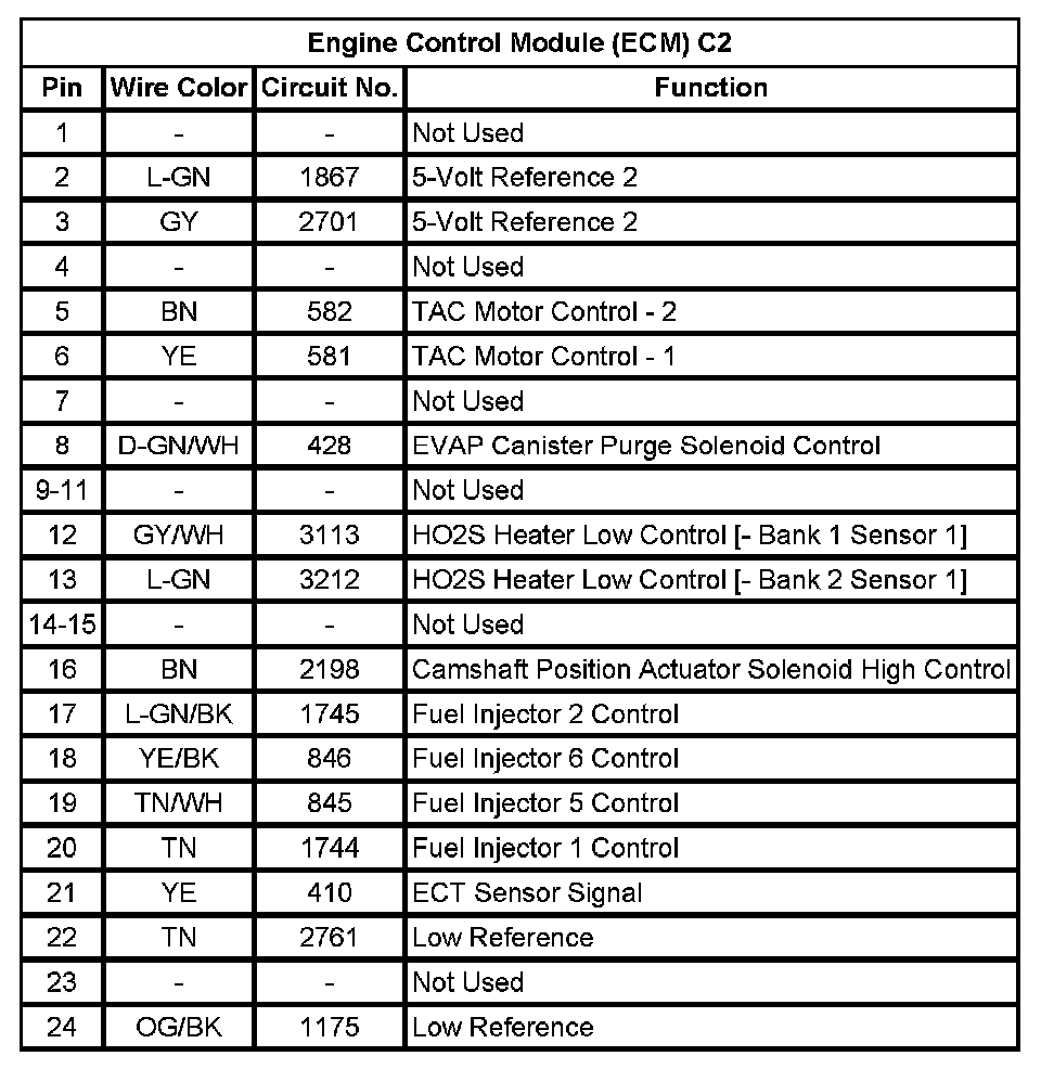 Engine Control Module (ECM) C2 (Pin 1 To 24):